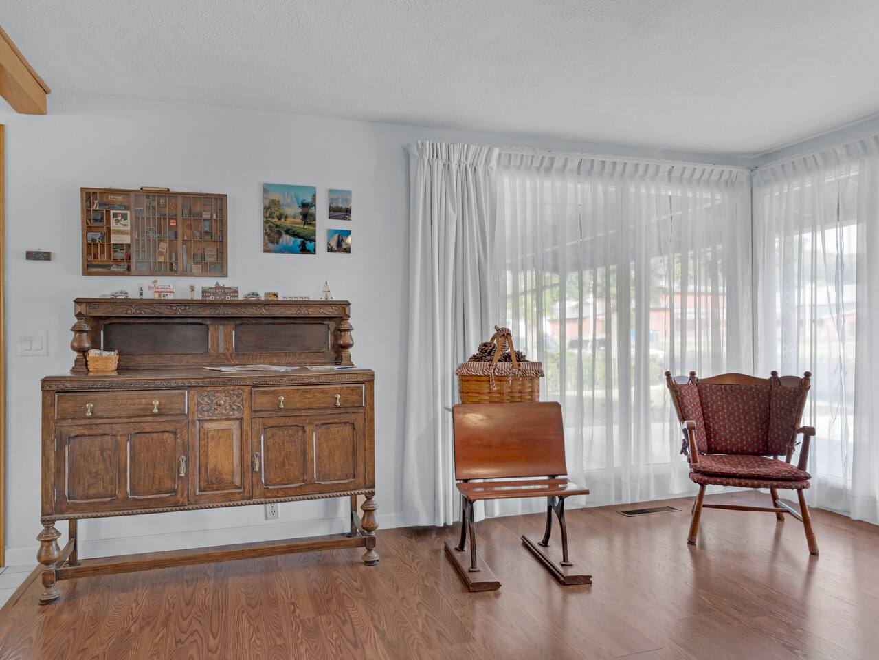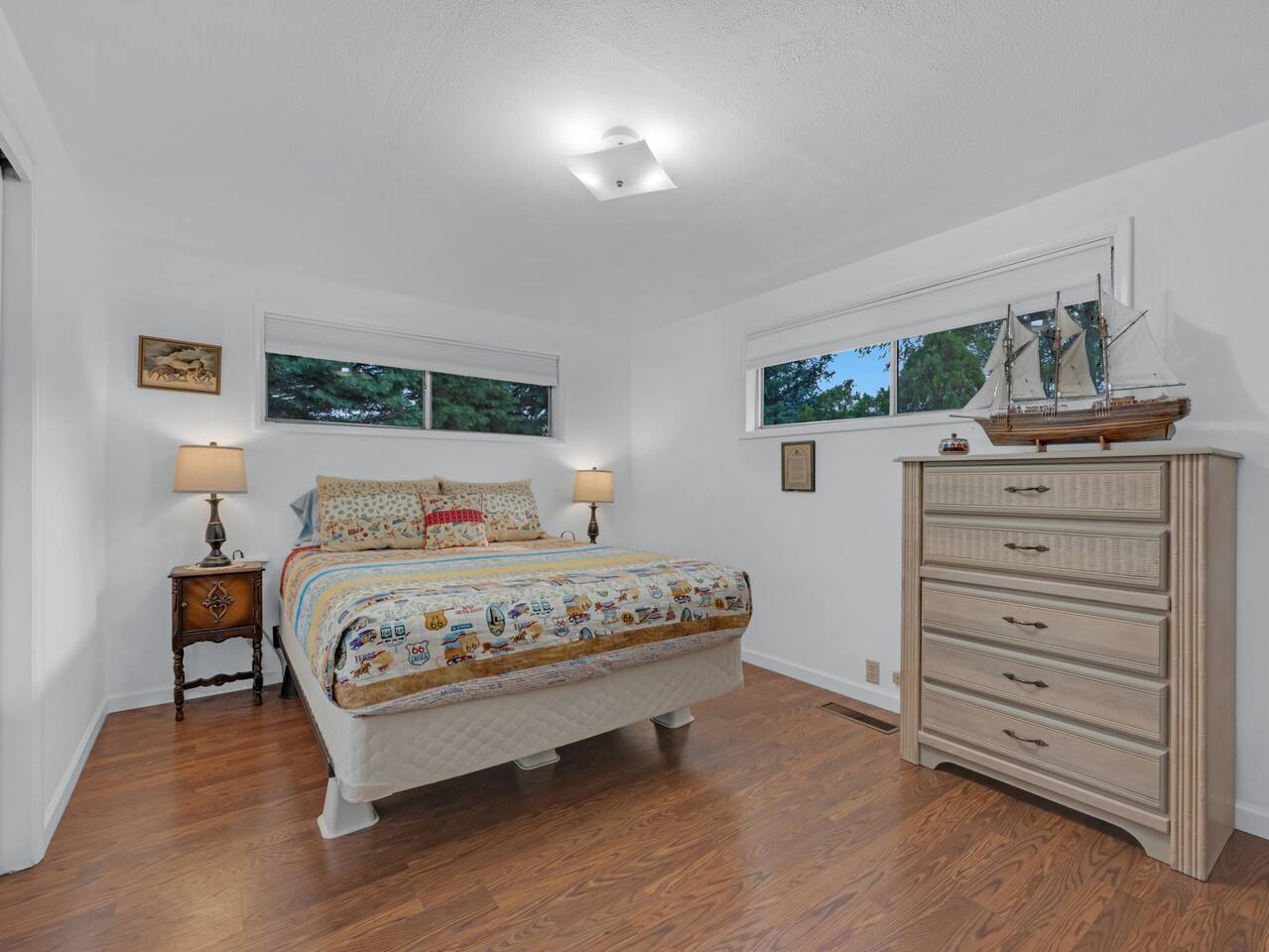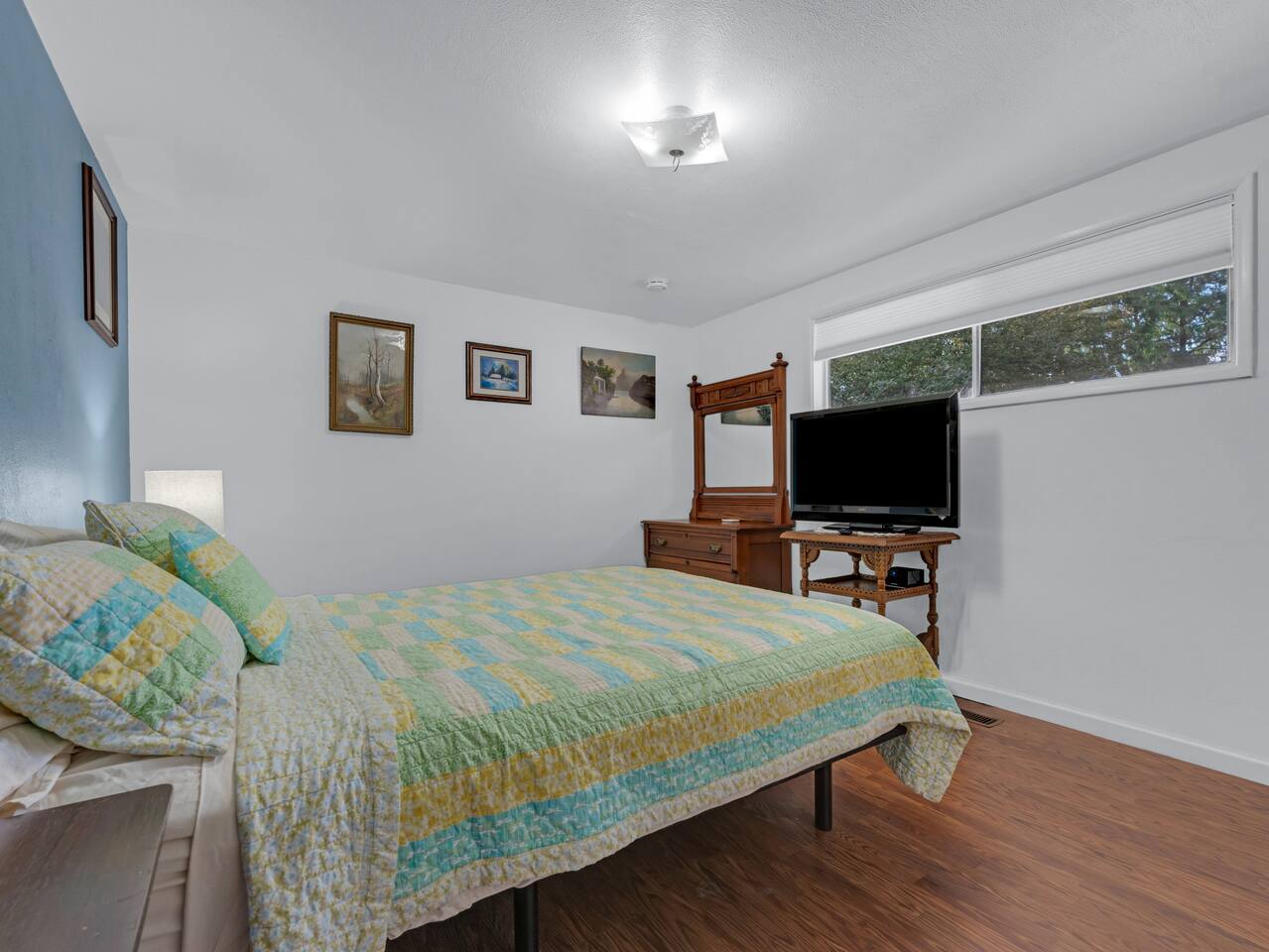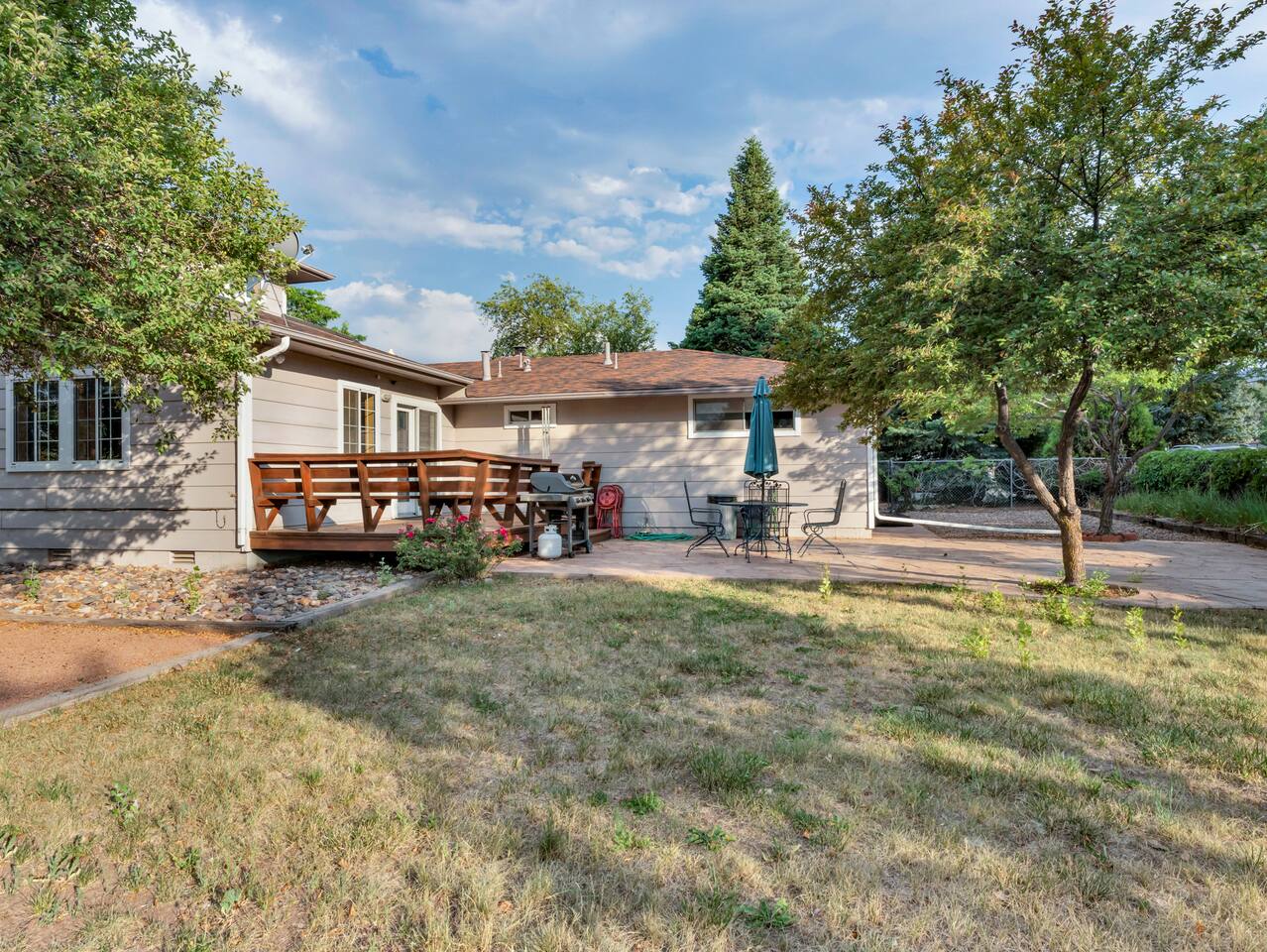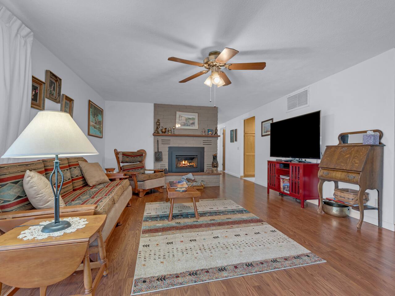 The House is a spacious place and located in town, close to the Safeway. Roku Tvs in each room, and living rooms beside one with the bunk beds. A very large TV is in the house as well. Has a working space, and washer and dryer in the house. House was lived in for a long time so should have everything you need! We welcome pets, but a pet fee of 75 dollars will be added to help with additional cleaning cost and yard maintenance required with being a pet friendly property.