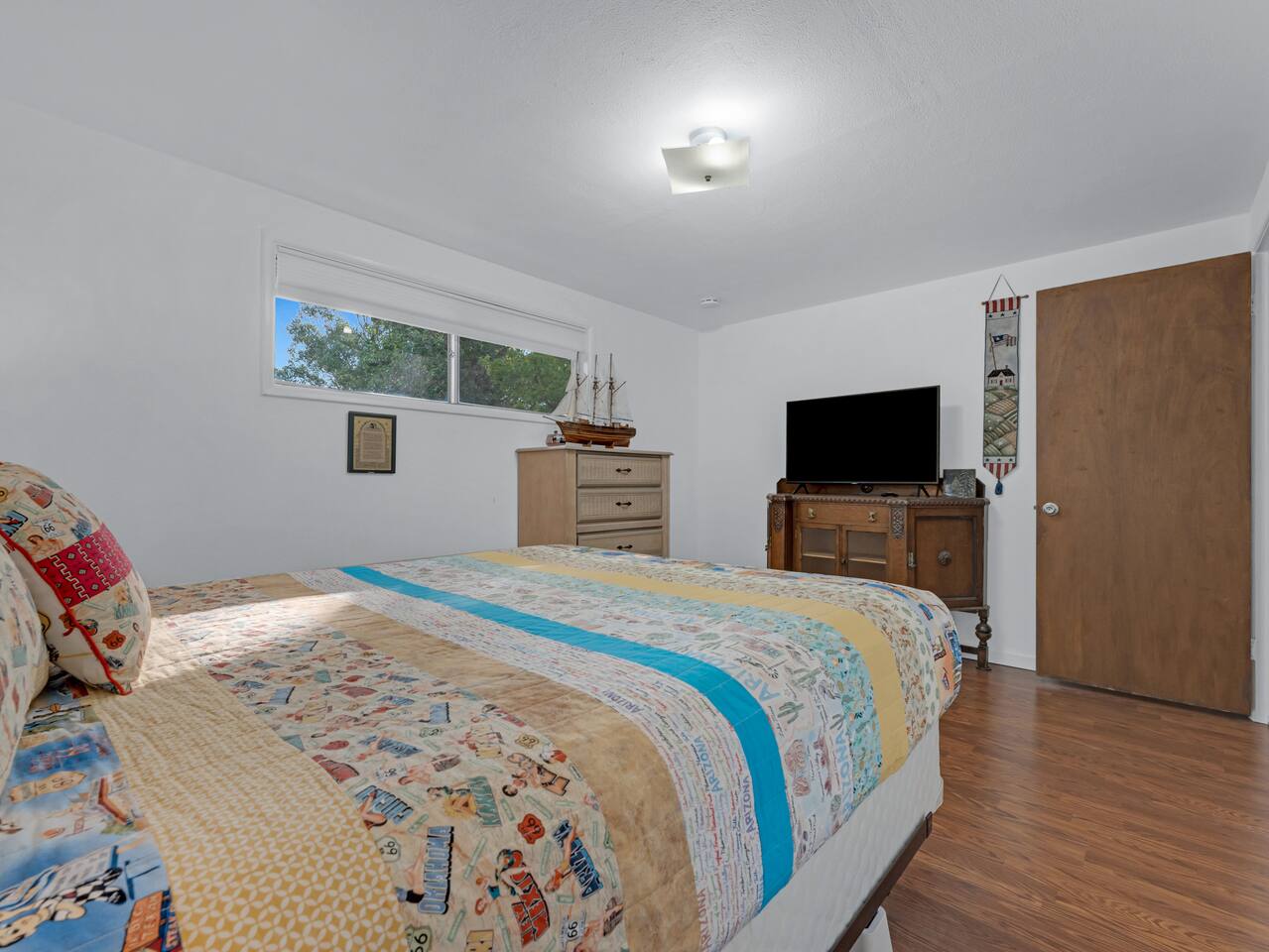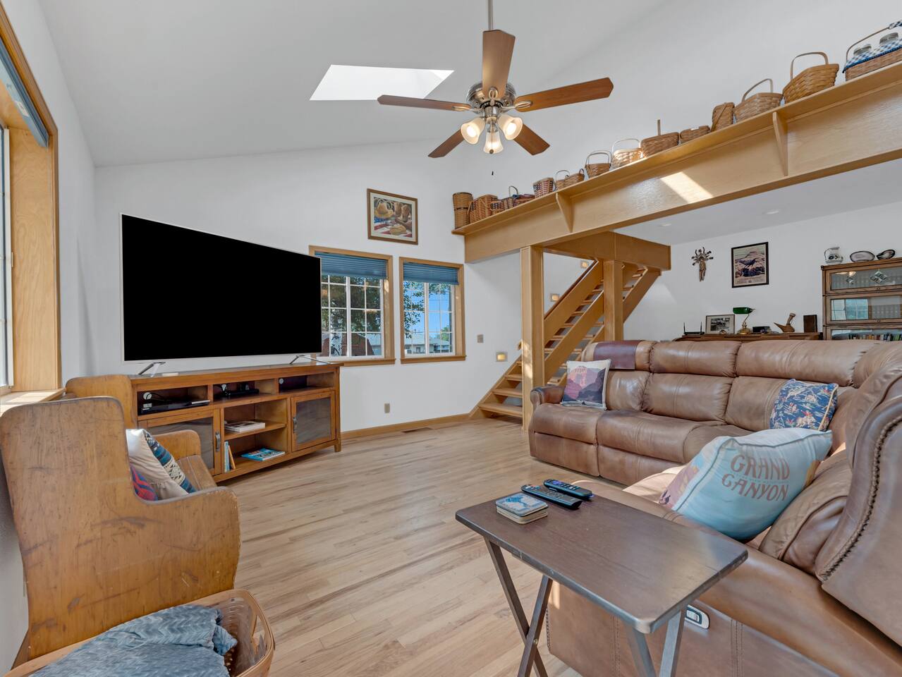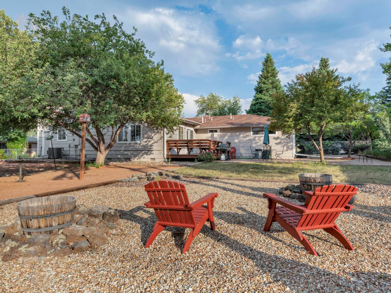 This house is a spacious house with nice views of Bill Williams mountain. It is located walking distance to downtown and .6 miles from the train station. It is only 4 blocks away from trails in Kaibab national forest. It has a large backyard, deck, weber grill, and doggie door for furry friends. This house is a neighborhood gem in a prime location. For additional sleeping space there is a play pen, queen air mattress and twin trundle under the bunk beds